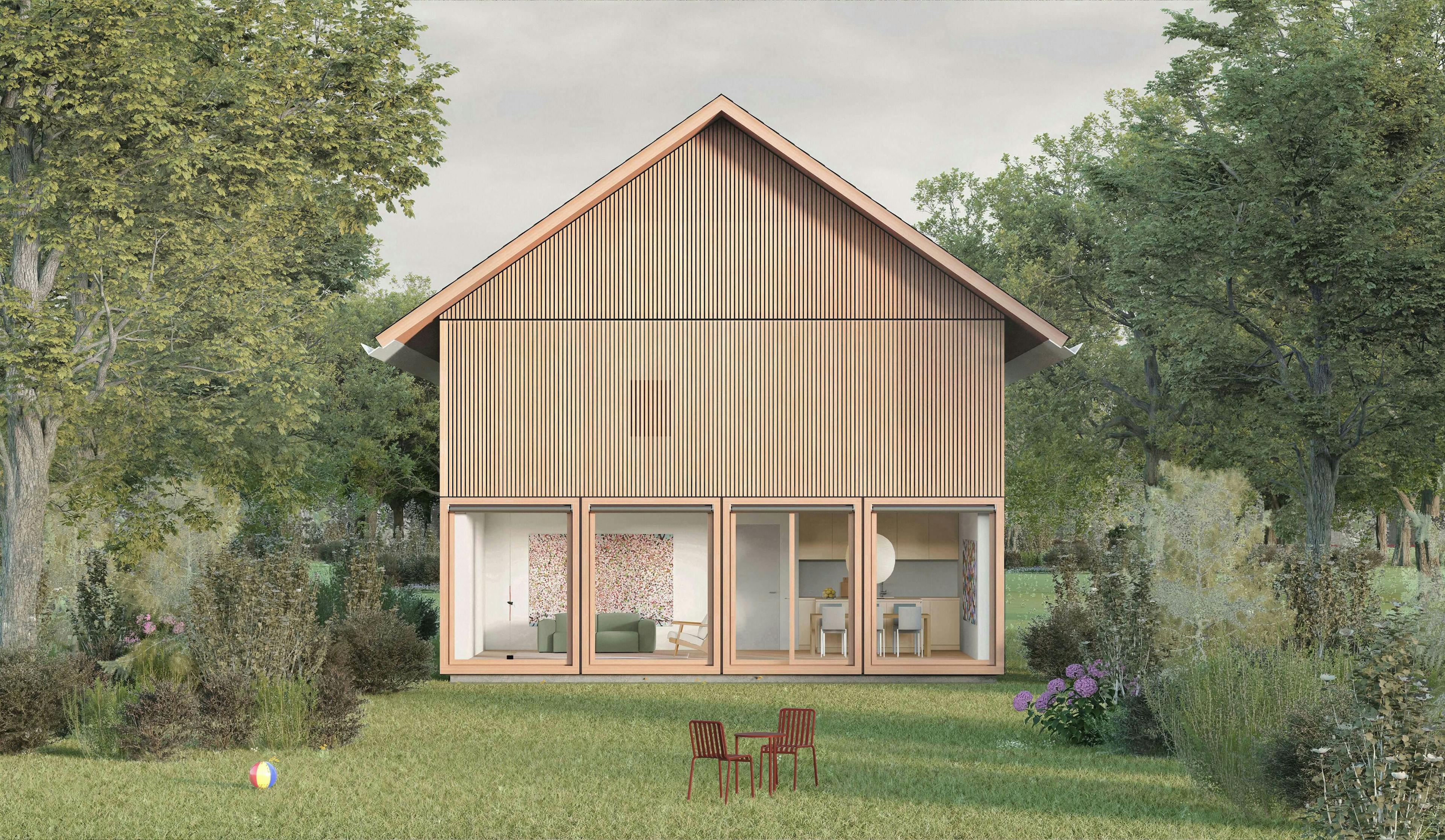 Das Haus MDLR 172 D ist ein modernes Fertighaus, das modulare Flexibilität und natürliche Materialien für nachhaltiges Wohnen vereint. Die vollständig in Holz ausgeführte Konstruktion mit Dämmung und Fassade sorgt für ein energieeffizientes und gesundes Wohnumfeld.