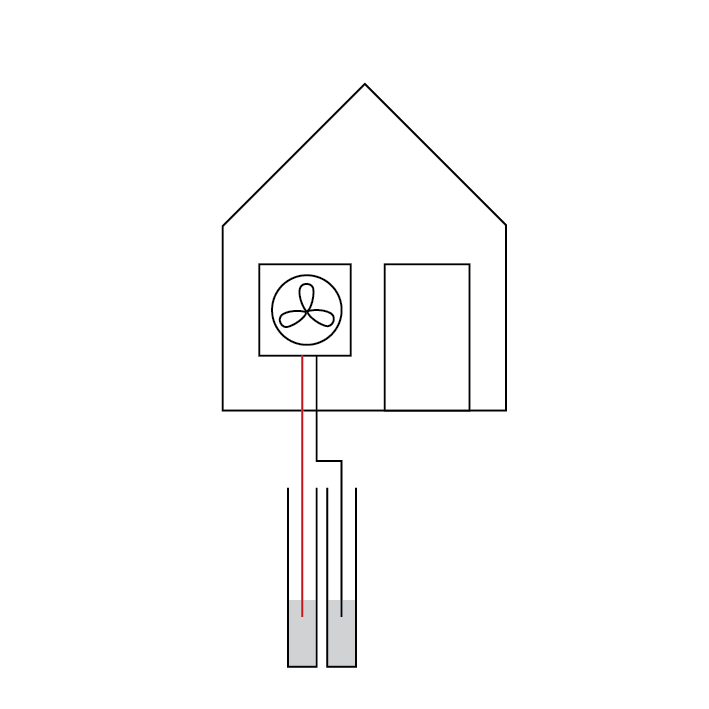 Sie nutzt einen Erdkollektor zum Heizen und Kühlen des Hauses. Geeignet, wenn rund um das Haus unbebautes Land vorhanden ist.