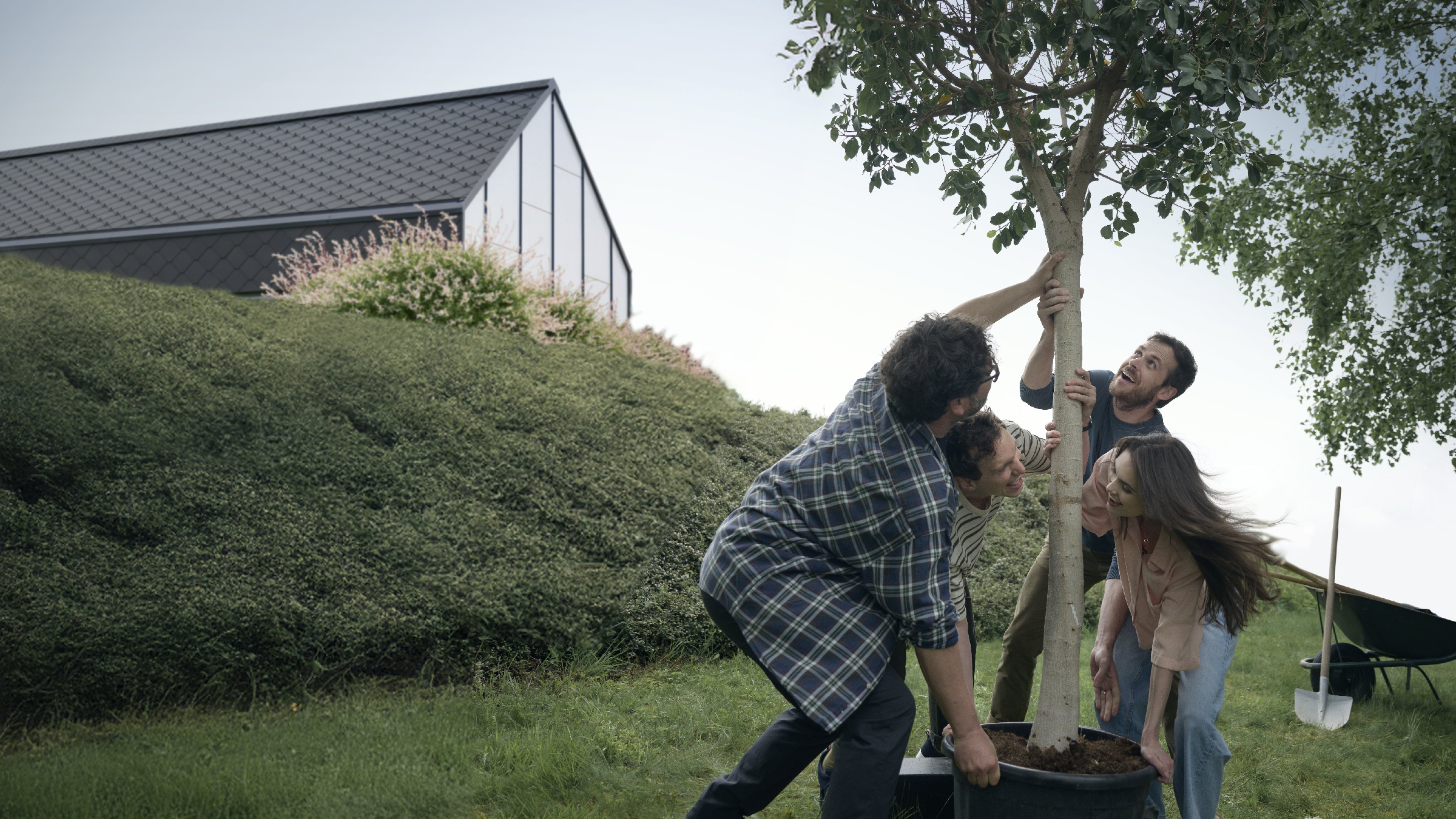 Unser Weg zu einem klimapositiven Wohnen, mit dem Ziel, Gebäude mit einem negativen CO2-Ausstoß zu bauen. Fußabdruck. Wir haben die ehrgeizige Strategie, dass alle unsere Gebäude in Zukunft einen positiven Beitrag zur Umwelt leisten. Dies ist ein Zeichen dafür, dass wir Nachhaltigkeit sehr ernst nehmen.
