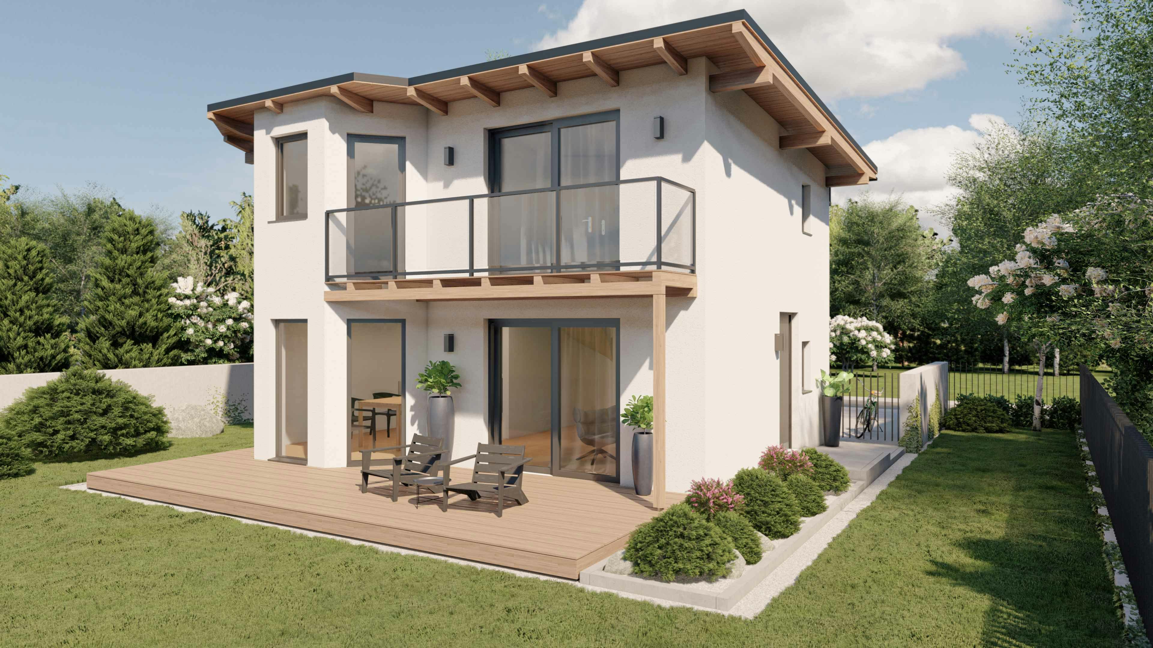 Auf Wunsch können Marles Flachdächer bekiest oder begrünt werden. Das sorgt für automatische Kühlung im Sommer und trägt zum Klimaschutz bei. Und als Dachterrasse ausgeführt, genießen wir die lauen Sommerabende noch ein bisschen mehr.
